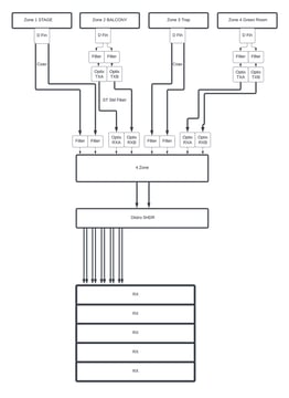 "The 4Zone Distro allowed for seamless reception via two Diversity Fin receive zones across roughly 200 feet of operating area, including staircases, walls and hallways. Our client was thrilled with the results."